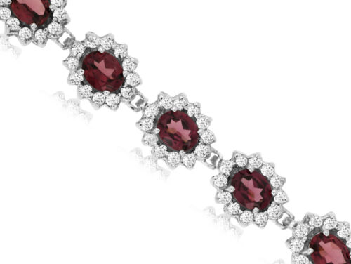 10.45CT DIAMOND & AAA RHODOLITE 14KT WHITE GOLD 3D OVAL FLOWER TENNIS BRACELET