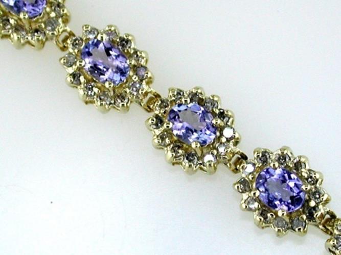 14KT YELLOW GOLD TENNIS BRACELET. 3D MULTI FLOWER DESIGN. ROUND DIAMONDS ARE F/G COLOR, VSSI CLARITY 2.45 CARATS. AAA OVAL TANZANITES ARE 8.10 CARATS. 18" INCHES LONG. WRITTEN APPRAISAL AVAILABLE. COMES IN A PRESENTABLE GIFT BOX.