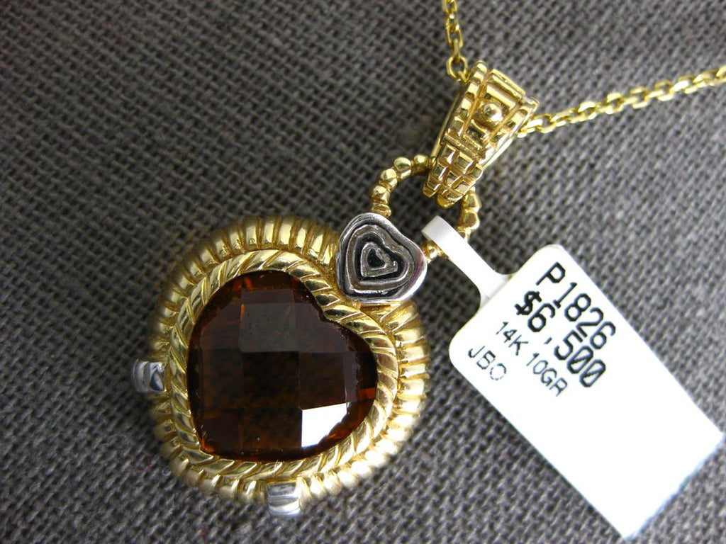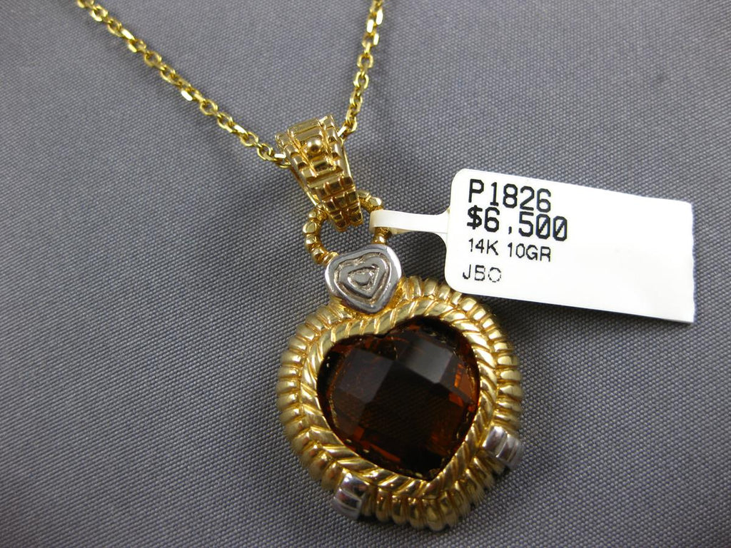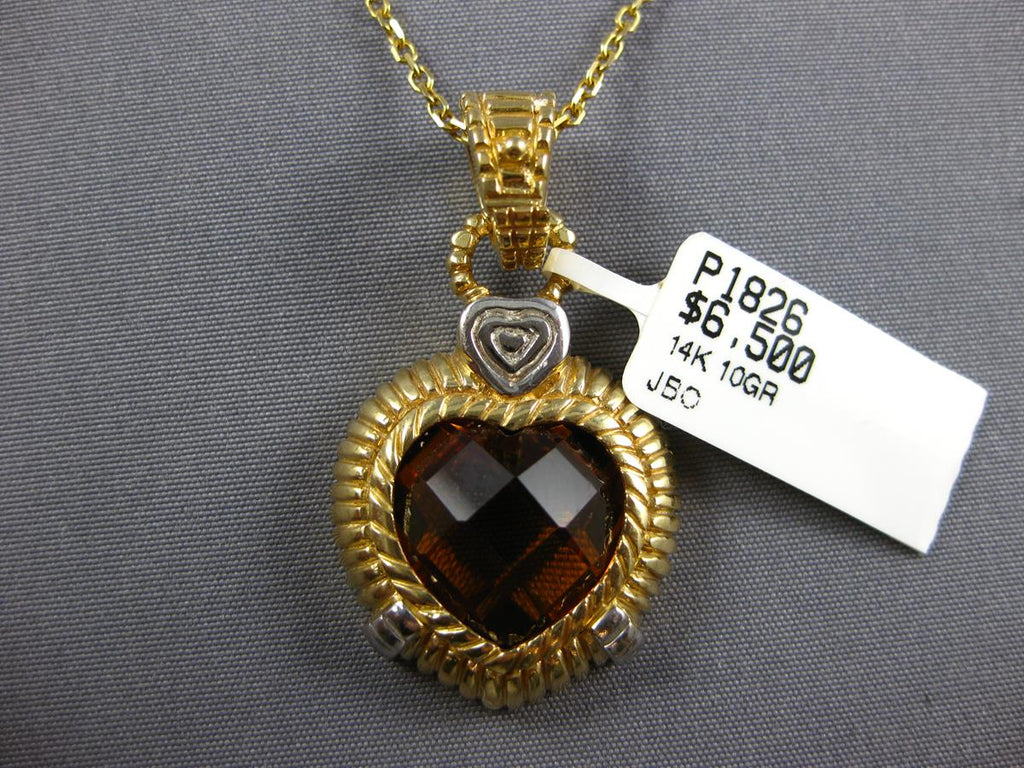 14KT YELLOW GOLD FLOATING LOVE PENDANT. 3D HEART SHAPE FILIGREE DESIGN. AAA EXTRA FACETED CITRINE IS 10.0 CARATS. MEASURES 36mm X 20mm. COMES ON A 14KT GOLD DIAMOND CUT 16" INCH CHAIN. WRITTEN APPRAISAL AVAILABLE. COMES IN A PRESENTABLE GIFT BOX.