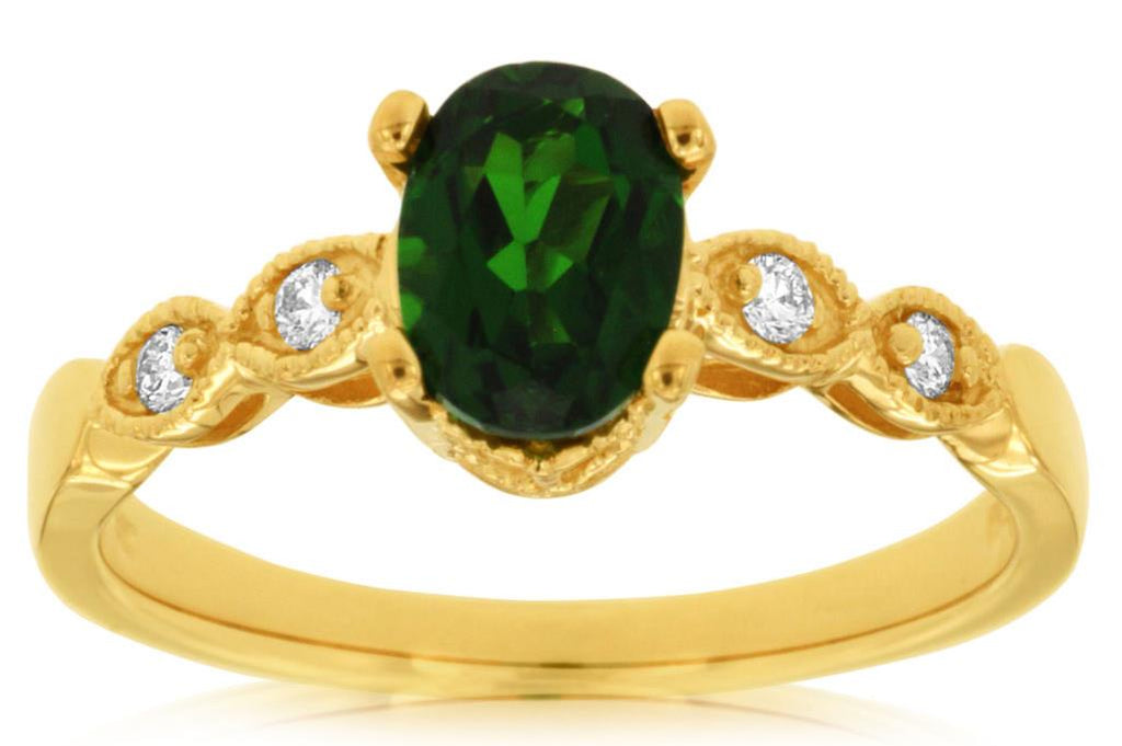 1.03CT DIAMOND & AAA GREEN GARNET 14KT YELLOW GOLD OVAL & ROUND FRIENDSHIP RING