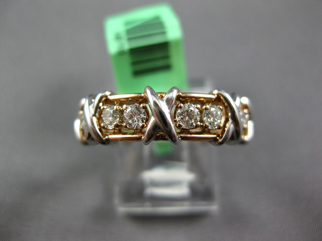 18KT WHITE AND ROSE GOLD ANNIVERSARY LOVE RING. 3D MULTI X ETERNITY DESIGN. DIAMONDS ARE F/G COLOR, VSSI CLARITY 1.04 CARATS. MEASURES 5mm WIDE. RING SIZE 6.25. CAN BE SIZED BY OUR MASTER JEWELER UPON REQUEST. WRITTEN APPRAISAL AVAILABLE. COMES IN A PRESENTABLE GIFT BOX.