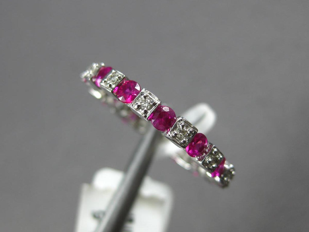 1.04CT DIAMOND & AAA RUBY 14KT WHITE GOLD ROUND SQUARE ETERNITY ANNIVERSARY RING