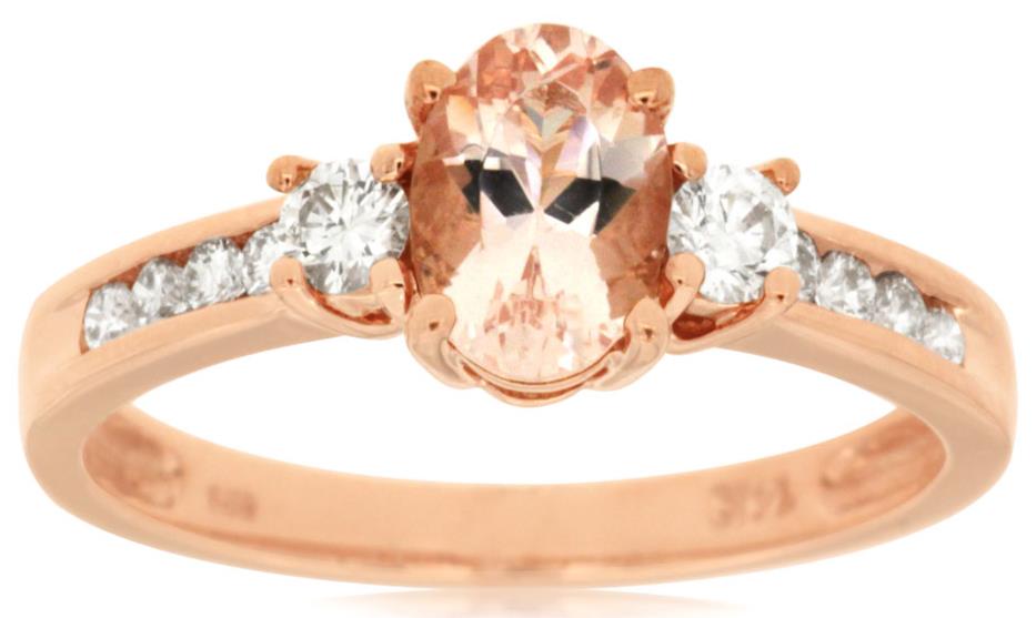 1.05CT DIAMOND AAA MORGANITE 14KT ROSE GOLD OVAL & ROUND 3 STONE ENGAGEMENT RING