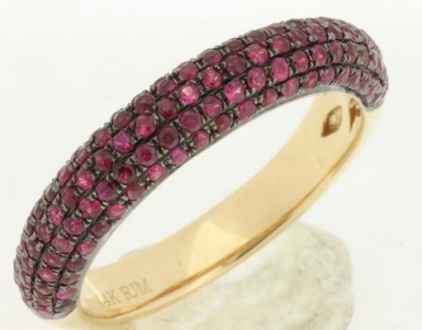 1.0CT AAA RUBY 14KT YELLOW GOLD CLASSIC MULTI ROW SEMI ETERNITY ANNIVERSARY RING