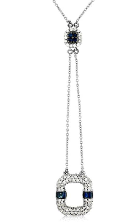 1.0CT DIAMOND & AAA SAPPHIRE 14KT WHITE GOLD 3D MULTI ROW SQUARE LARIAT NECKLACE