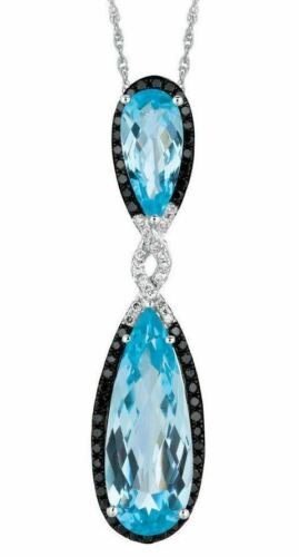 11.25CT WHITE & BLACK DIAMOND & AAA BLUE TOPAZ 14KT WHITE GOLD TEAR DROP PENDANT