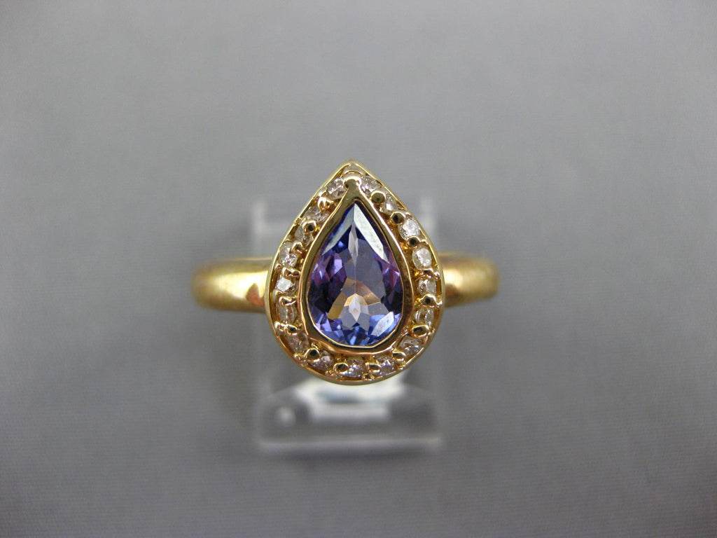1.12CT DIAMOND & AAA TANZANITE 14KT YELLOW GOLD PEAR SHAPE HALO ENGAGEMENT RING