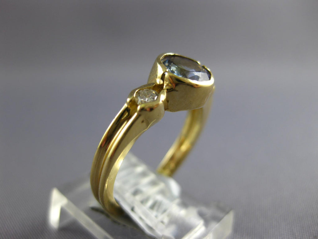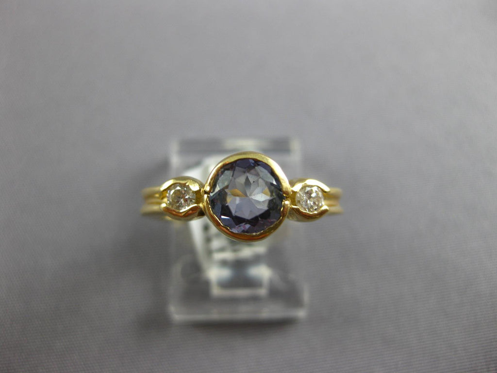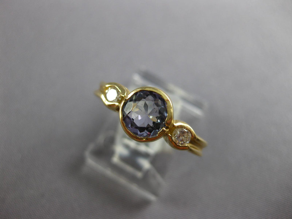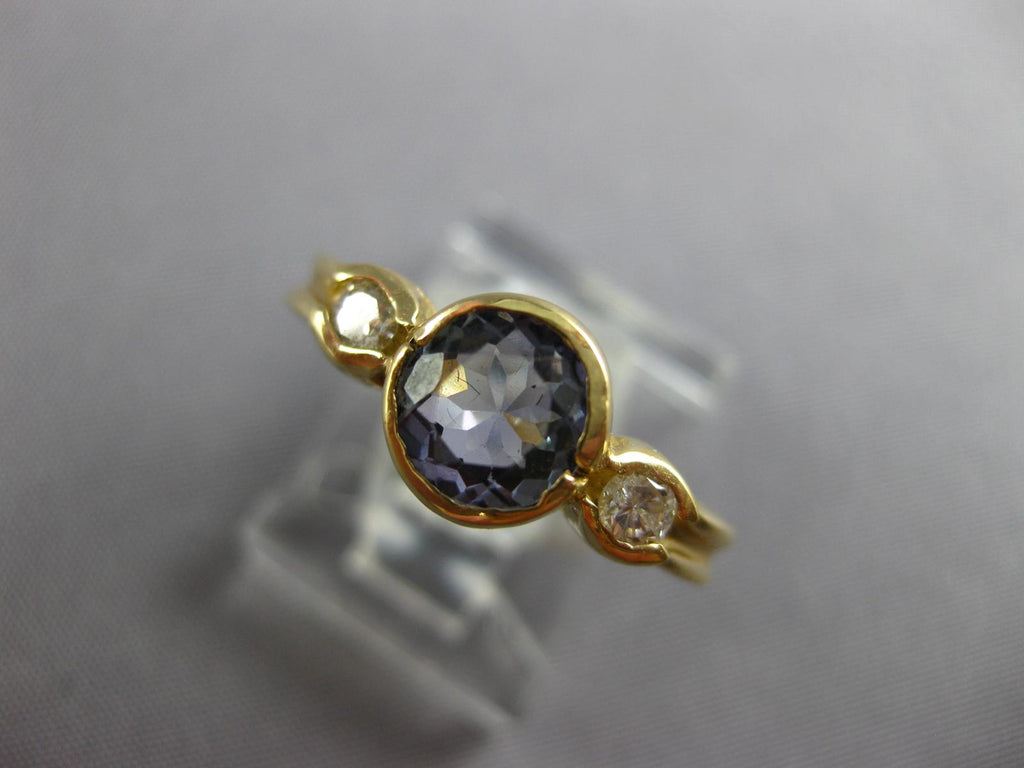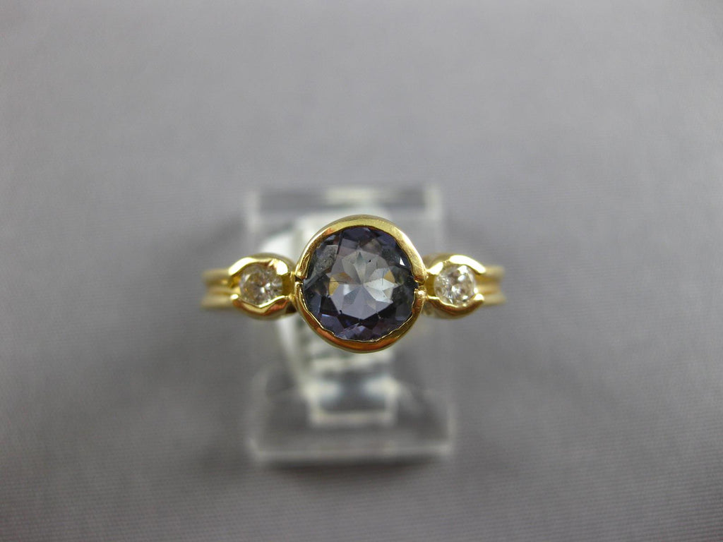14KT YELLOW GOLD ENGAGEMENT RING. 3D CLASSIC BEZEL THREE STONE DESIGN. DIAMONDS ARE F/G COLOR, VSSI CLARITY .15 CARATS. ROUND TANZANITE IS 1.0 CARAT. MEASURES 7.3mm WIDE. RING SIZE 5.75. CAN BE SIZED BY OUR MASTER JEWELER UPON REQUEST. WRITTEN APPRAISAL AVAILABLE. COMES IN A PRESENTABLE GIFT BOX.