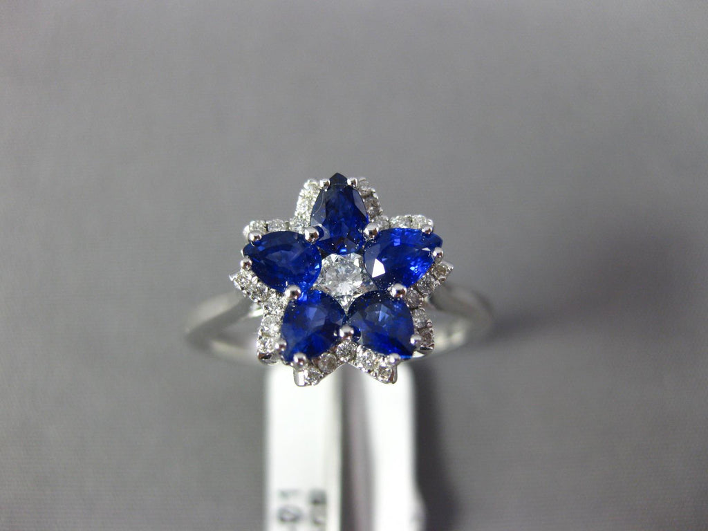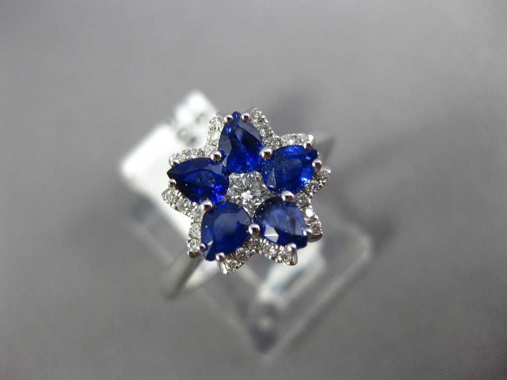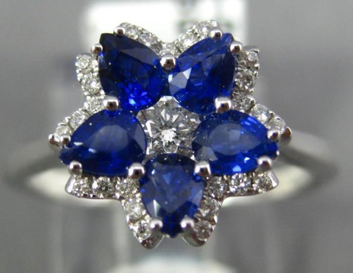1.16CT DIAMOND & AAA SAPPHIRE 18K WHITE GOLD ROUND & PEAR SHAPE STAR FLOWER RING