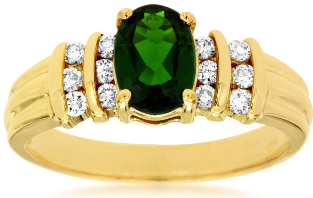 1.18CT DIAMOND & AAA GREEN GARNET 14KT YELLOW GOLD OVAL & ROUND ENGAGEMENT RING