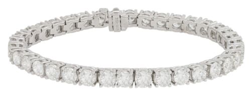 18KT WHITE GOLD TENNIS BRACELET. 3D CLASSIC FOUR PRONG ETERNITY DESIGN. ROUND DIAMONDS ARE G/H COLOR, VSSI CLARITY 12.1 CARATS. 7" INCHES LONG. WRITTEN APPRAISAL AVAILABLE. COMES IN A PRESENTABLE GIFT BOX.