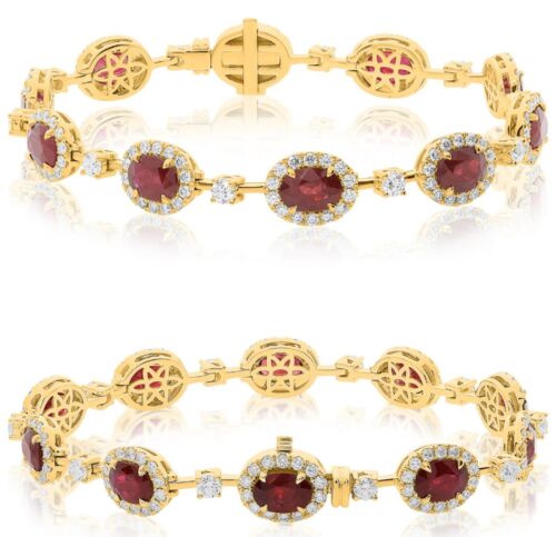 12.86CT DIAMOND & AAA RUBY 18KT YELLOW GOLD 3D OVAL & ROUND LOVE TENNIS BRACELET