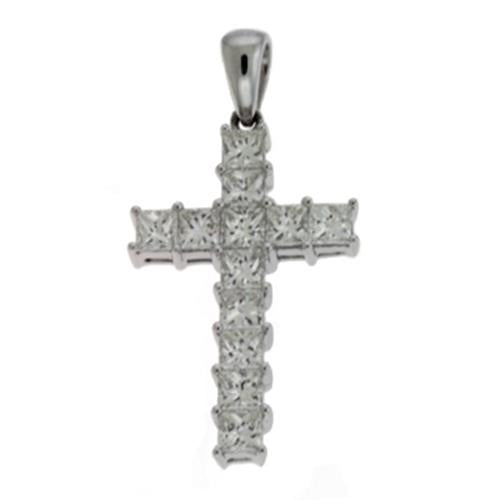 14KT WHITE GOLD FLOATING PENDANT. 3D INVISIBLE CROSS DESIGN. PRINCESS CUT DIAMONDS ARE F/G COLOR, VSSI CLARITY 1.20 CARATS. COMES ON A 14KT GOLD DIAMOND CUT 16" INCH CHAIN. WRITTEN APPRAISAL AVAILABLE. COMES IN A PRESENTABLE GIFT BOX.