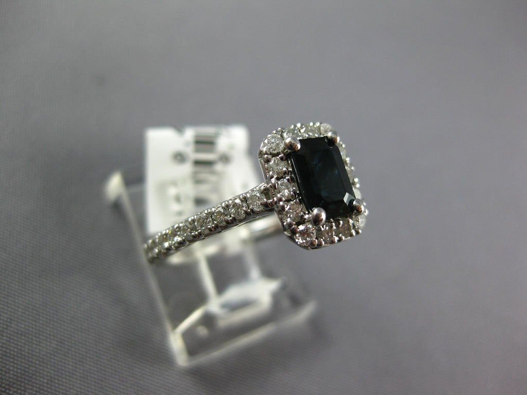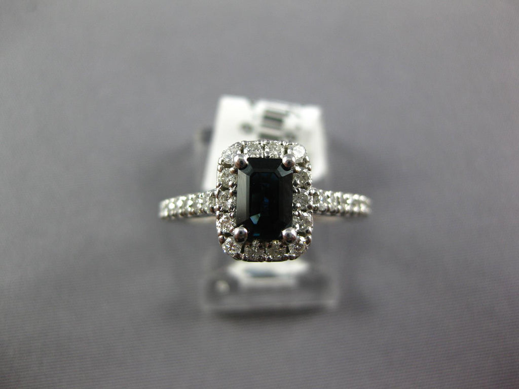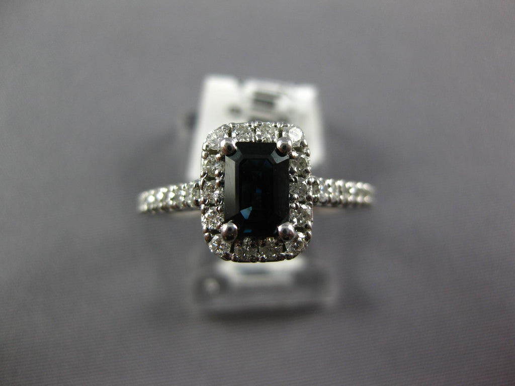 1.21CT DIAMOND & AAA SAPPHIRE 14K WHITE GOLD 3D EMERALD CUT HALO ENGAGEMENT RING