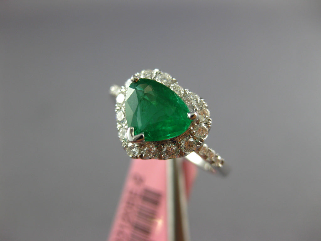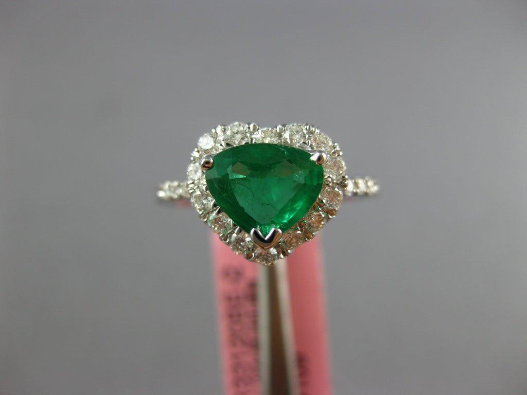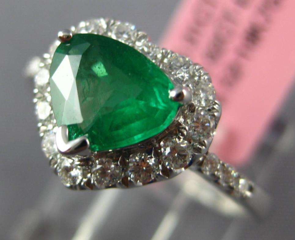 1.23CT DIAMOND & AAA EMERALD 18K WHITE GOLD TRILLION HEART SHAPE ENGAGEMENT RING