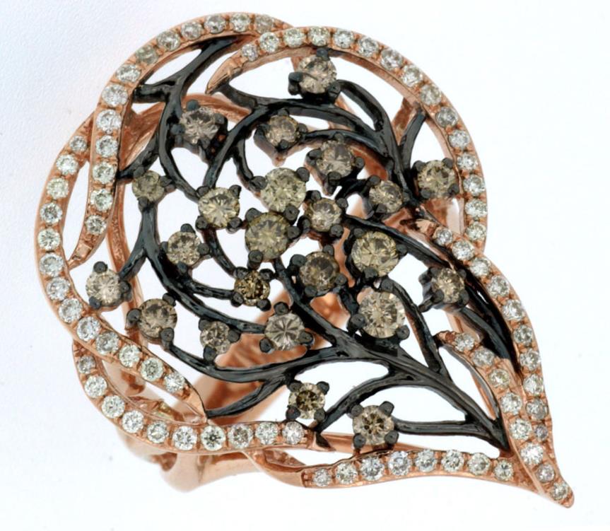 1.23CT WHITE & CHOCOLATE FANCY DIAMOND 14K ROSE & BLACK GOLD MULTI LEAF FUN RING