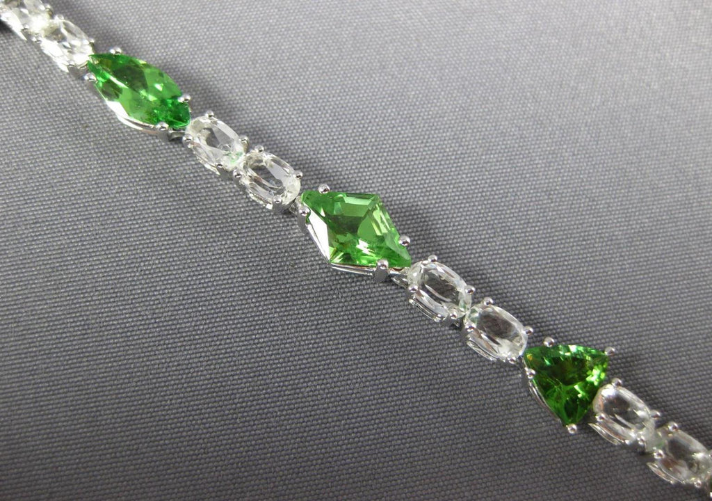 12.43CT AAA WHITE SAPPHIRE & TSAVORITE 18KT WHITE GOLD MULTI SHAPE FUN BRACELET