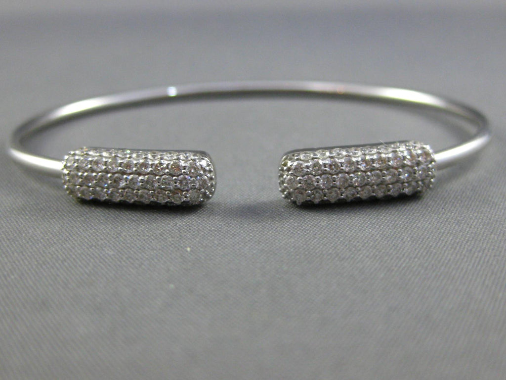 1.25CT DIAMOND 14KT WHITE GOLD 3D RECTANGULAR PAVE FLEXIBLE LOVE BANGLE BRACELET