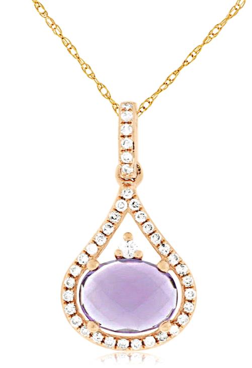 1.28CT DIAMOND & AAA AMETHYST 14KT ROSE GOLD OVAL & ROUND TEAR DROP LOVE PENDANT