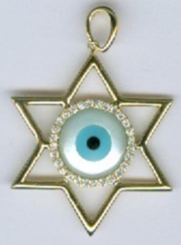 .12CT DIAMOND 14KT YELLOW GOLD 3D EVIL EYE STAR OF DAVID LUCKY FLOATING PENDANT