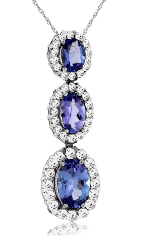 1.2CT DIAMOND & AAA TANZANITE 14K WHITE GOLD OVAL & ROUND FLOWER JOURNEY PENDANT