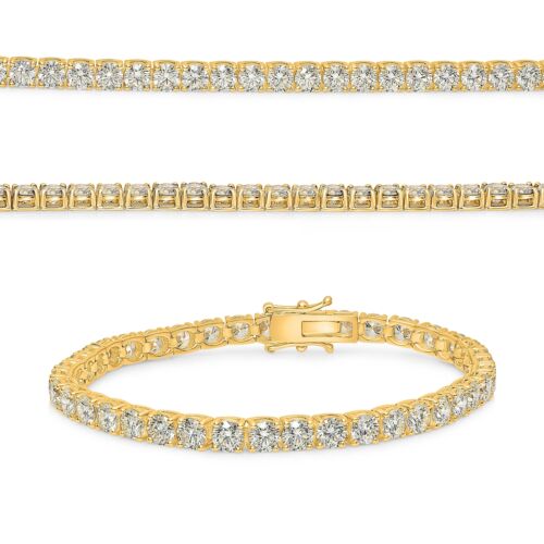 13.0CT DIAMOND 14K YELLOW GOLD 3D ROUND CLASSIC 4 PRONG ETERNITY TENNIS BRACELET