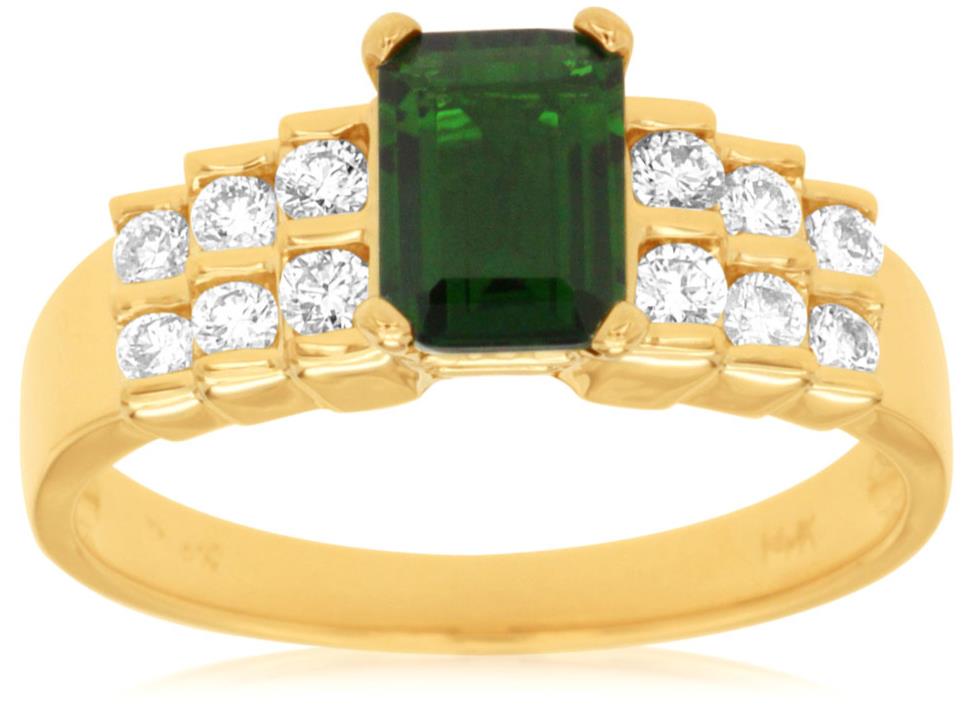 1.33CT DIAMOND & AAA GREEN GARNET 14K YELLOW GOLD 3D EMERALD CUT ENGAGEMENT RING