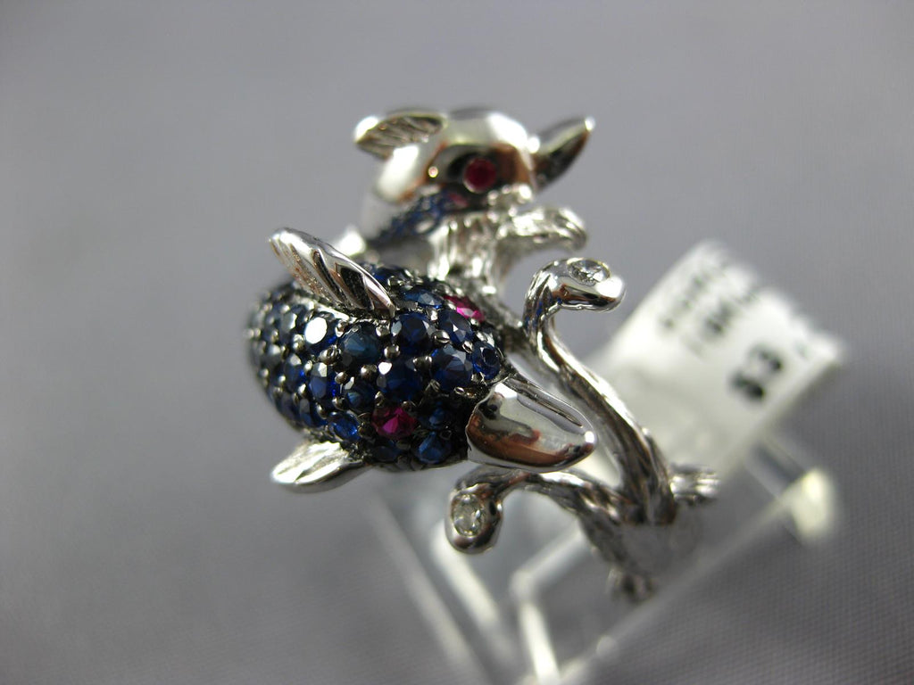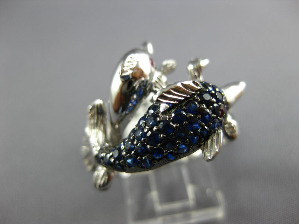 1.36CT DIAMOND & AAA SAPPHIRE & RUBY 18KT WHITE GOLD 3D DOUBLE DOLPHIN FUN RING