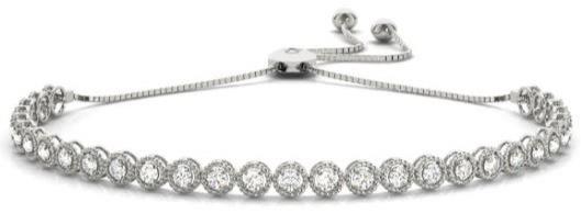 1.39CT DIAMOND 14K WHITE GOLD 3D ROUND BEZEL ADJUSTABLE FILIGREE TENNIS BRACELET