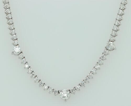 14.0CT DIAMOND 18K WHITE GOLD ROUND PAST PRESENT FUTURE ETERNITY TENNIS NECKLACE