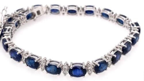 14.32CT DIAMOND & AAA SAPPHIRE 14KT WHITE GOLD 3D OVAL & ROUND TENNIS BRACELET