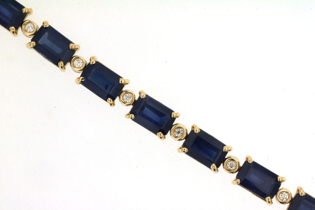 14.65CT DIAMOND & AAA SAPPHIRE 14KT YELLOW GOLD 3D EMERALD CUT TENNIS BRACELET