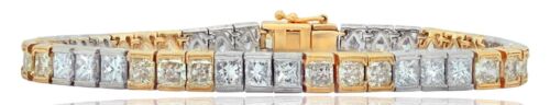 14.6CT WHITE & YELLOW DIAMOND 18KT 2 TONE GOLD PRINCESS CHANNEL TENNIS BRACELET