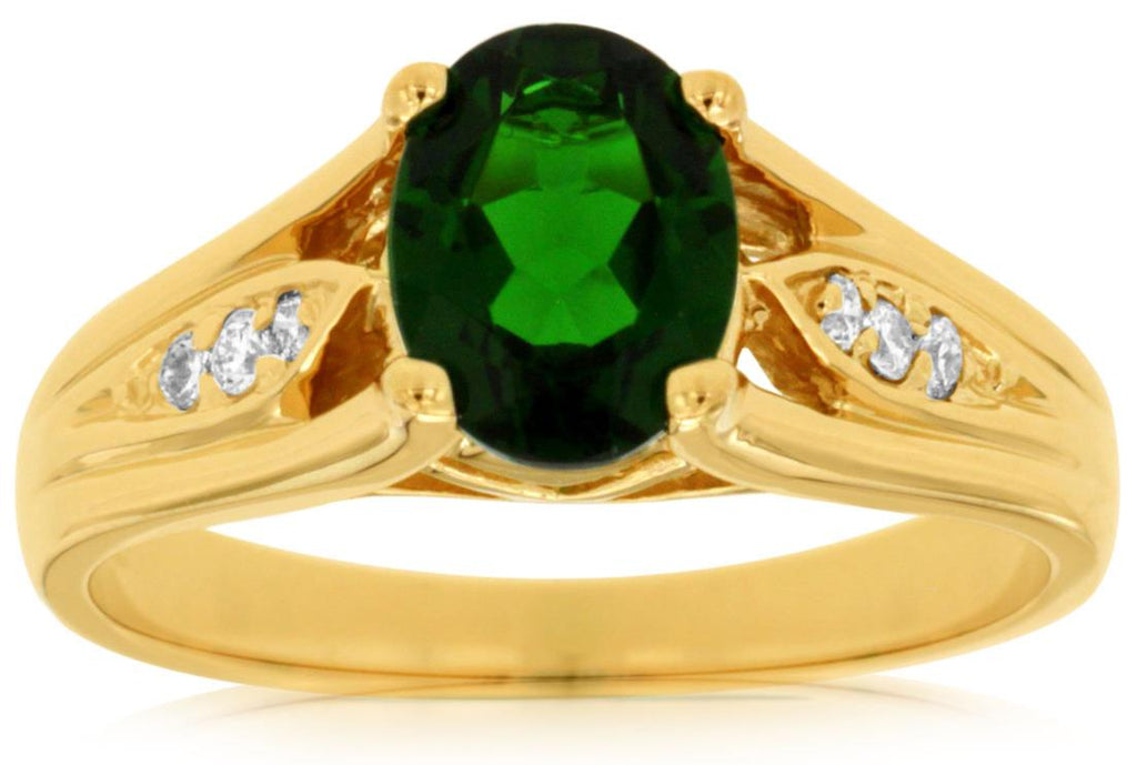 1.40CT DIAMOND & AAA GREEN GARNET 14KT YELLOW GOLD OVAL FRIENDSHIP PROMISE RING