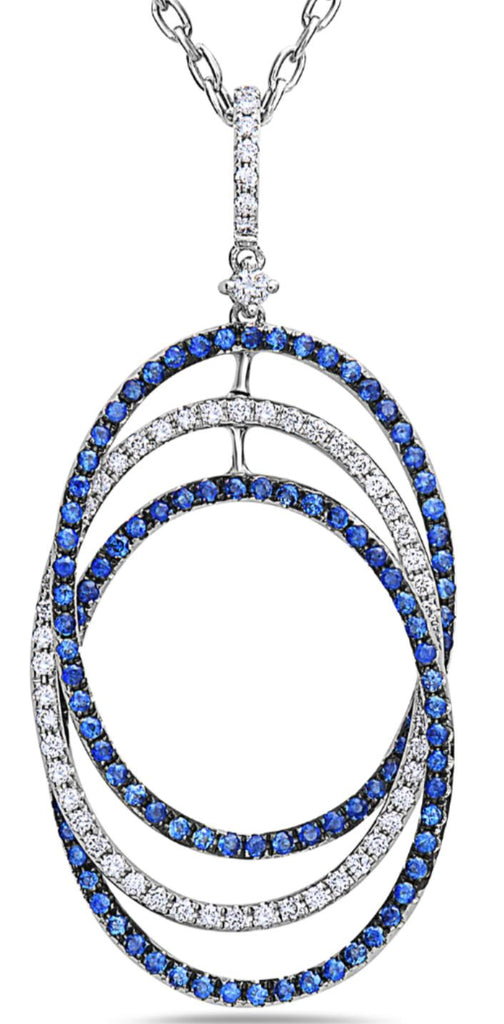 1.41CT DIAMOND & AAA SAPPHIRE 18KT WHITE GOLD INTERTWINING OVAL FLOATING PENDANT
