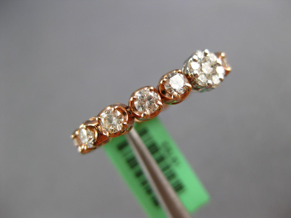 18KT WHITE AND ROSE GOLD LOVE RING. 3D CLASSIC FLOWER FLEXIBLE ETERNITY DESIGN. DIAMONDS ARE F/G COLOR, VSSI CLARITY 1.42 CARATS. MEASURES 5mm WIDE. RING SIZE 7.75. CAN BE SIZED BY OUR MASTER JEWELER UPON REQUEST. WRITTEN APPRAISAL AVAILABLE. COMES IN A PRESENTABLE GIFT BOX.