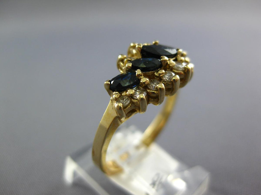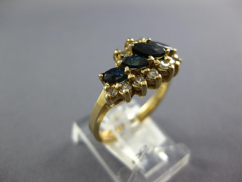14KT YELLOW GOLD ANNIVERSARY FUN RING. 3D GRADUATING DESIGN. ROUND DIAMONDS ARE F/G COLOR VSSI CLARITY .44 CARATS. AAA MARQUISE SAPPHIRES ARE 1.04 CARATS. MEASURES 8mm WIDE. RING SIZE 6. CAN BE SIZED BY OUR MASTER JEWELER UPON REQUEST. WRITTEN APPRAISAL AVAILABLE. COMES IN A PRESENTABLE GIFT BOX.