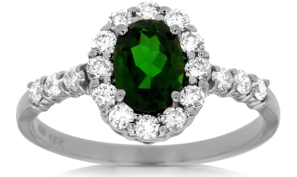 1.4CT DIAMOND & AAA GREEN GARNET 14K WHITE GOLD OVAL HALO FLOWER FRIENDSHIP RING