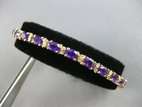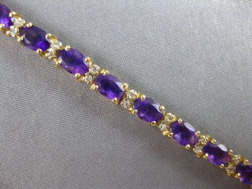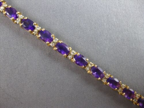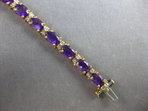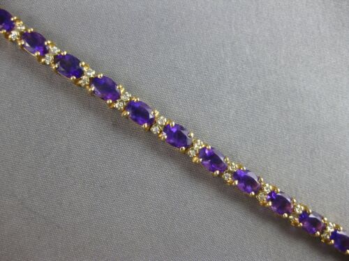 14KT YELLOW GOLD TENNIS BRACELET. 3D CLASSIC DESIGN. ROUND DIAMONDS ARE F/G COLOR, VSSI CLARITY .50 CARATS. AAA OVAL AMETHYSTS ARE 15.40 CARATS. MEASURES 5mm WIDE. 7.5" INCHES LONG. WRITTEN APPRAISAL AVAILABLE. COMES IN A PRESENTABLE GIFT BOX.