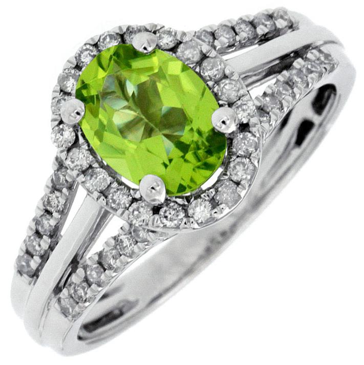 1.55CT DIAMOND & AAA PERIDOT 14KT WHITE GOLD OVAL & ROUND HALO ENGAGEMENT RING