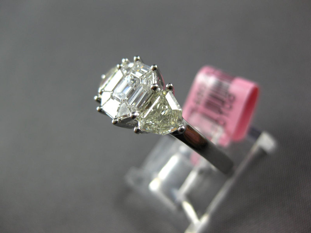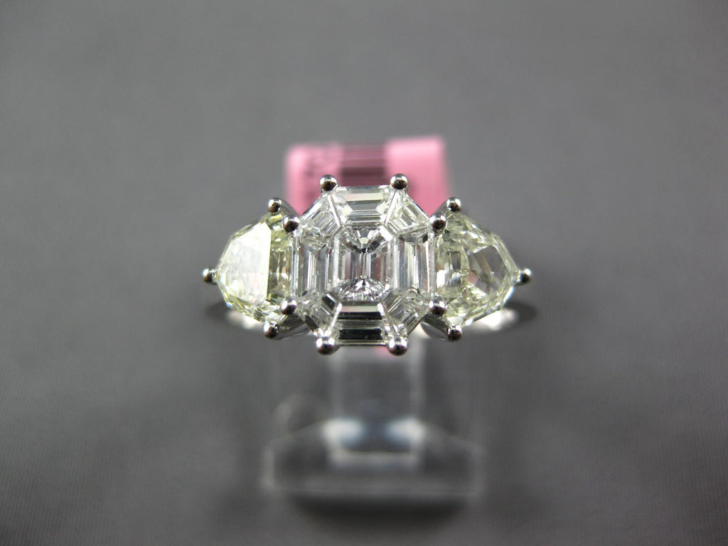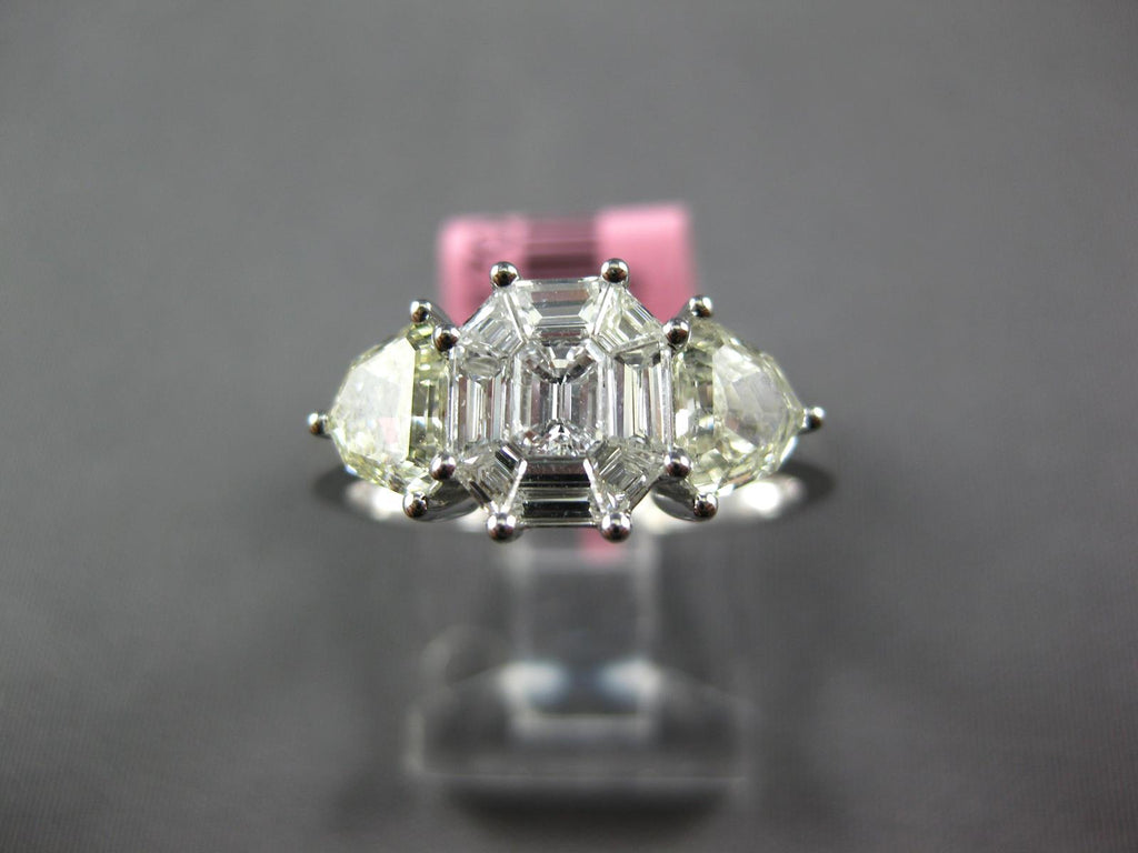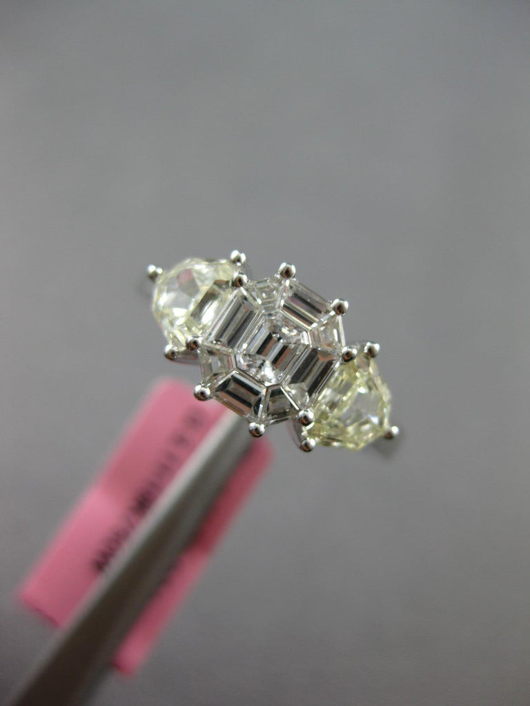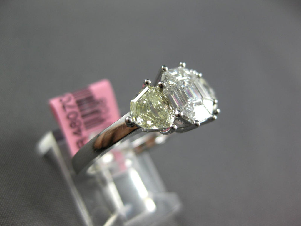 18KT WHITE GOLD FRIENDSHIP LOVE RING. 3D INVISIBLE DESIGN. EMERALD CUT WHITE DIAMONDS ARE F/G COLOR, VSSI CLARITY .80 CARATS. KITE CUT FANCY YELLOW DIAMONDS ARE .78 CARATS. MEASURES 7.5mm WIDE. RING SIZE 7.25. CAN BE SIZED BY OUR MASTER JEWELER UPON REQUEST. WRITTEN APPRAISAL AVAILABLE. COMES IN A PRESENTABLE GIFT BOX.