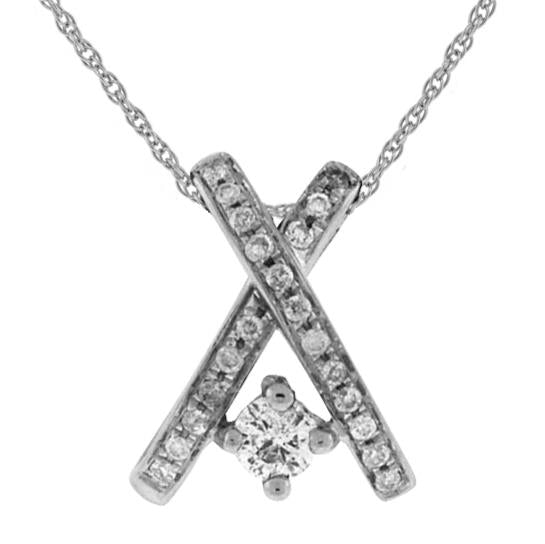 .15CT DIAMOND 14KT WHITE GOLD 3D SOLITAIRE CRISS CROSS X LOVE FLOATING PENDANT