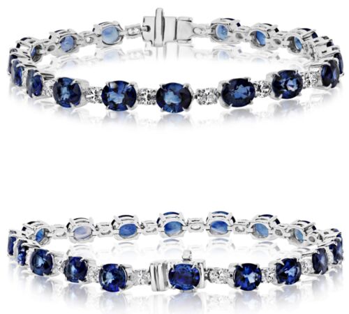 16.16CT DIAMOND & AAA SAPPHIRE PLATINUM OVAL LOVE TENNIS BRACELET