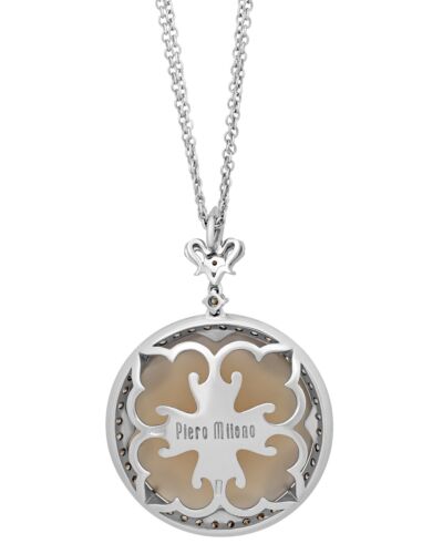 16.66CT MOCHA DIAMOND & AAA CHALCEDONY 18KT WHITE GOLD CIRCULAR FLOATING PENDANT