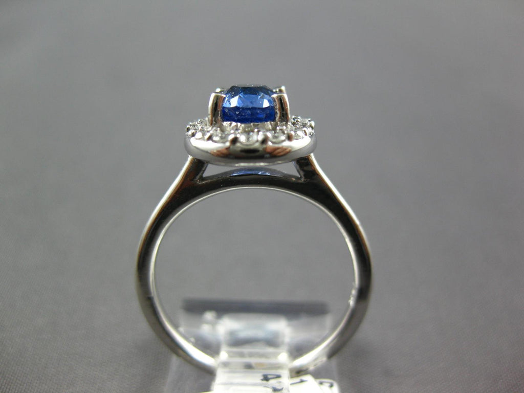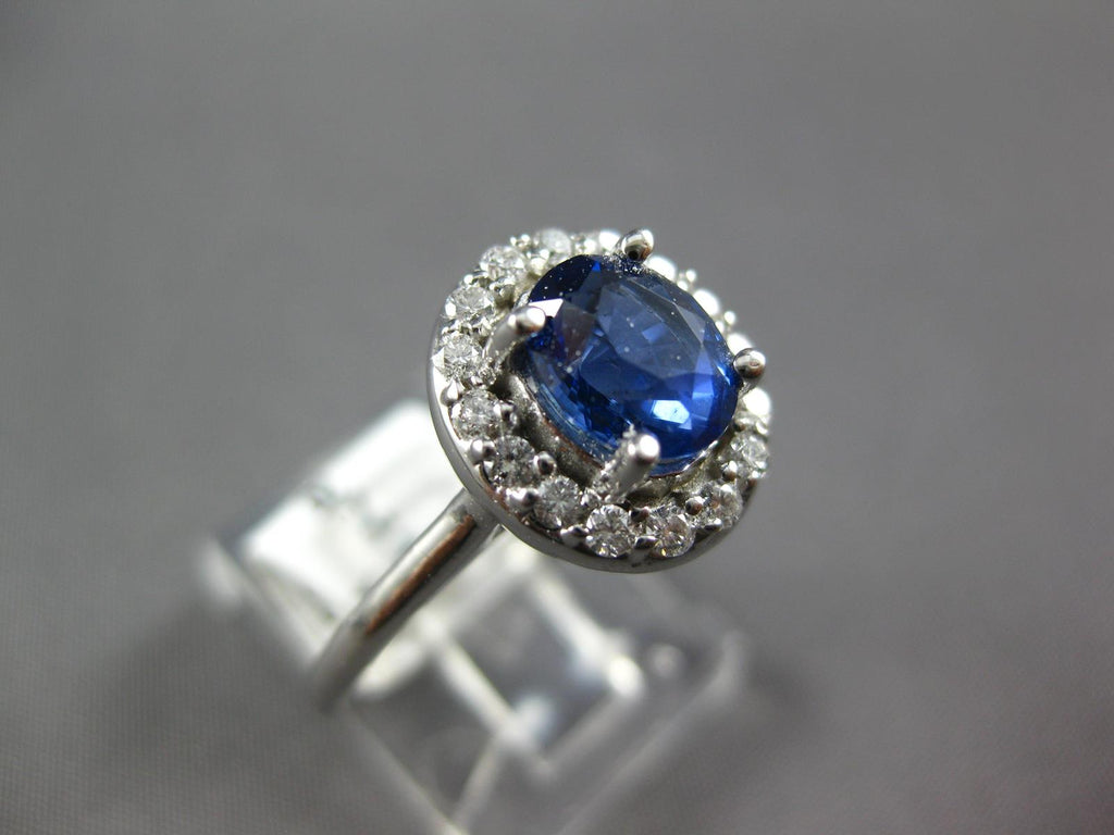 18KT WHITE GOLD ENGAGEMENT RING. 3D HALO FLOWER DESIGN. ROUND DIAMONDS ARE F/G COLOR, VSSI CLARITY .21 CARATS. AAA OVAL SAPPHIRE IS 1.41 CARATS. MEASURES 11mm WIDE. RING SIZE 6.75. CAN BE SIZED BY OUR MASTER JEWELER UPON REQUEST. WRITTEN APPRAISAL AVAILABLE. COMES IN A PRESENTABLE GIFT BOX.