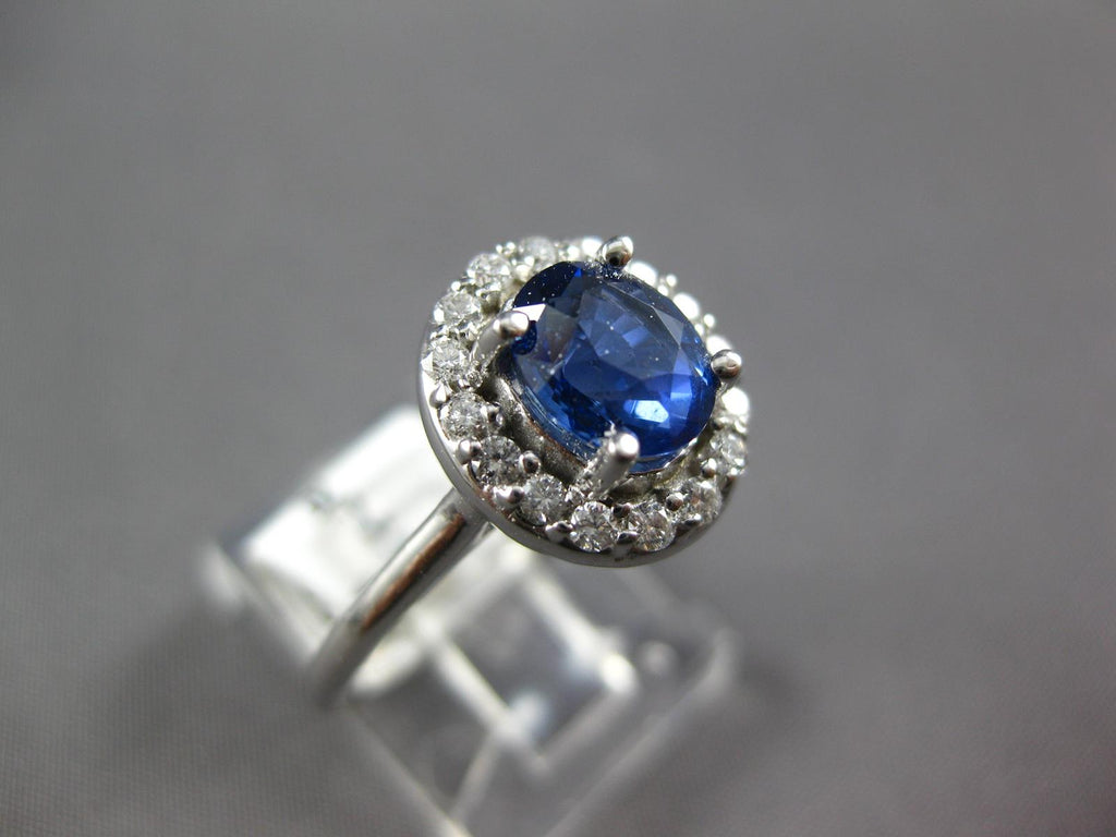1.62CT DIAMOND & AAA SAPPHIRE 14K WHITE GOLD 3D OVAL HALO FLOWER ENGAGEMENT RING