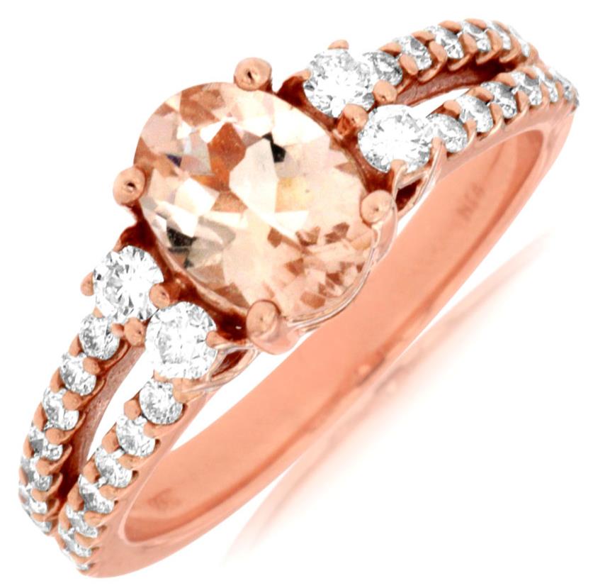 1.65CT DIAMOND & AAA MORGANITE 14KT ROSE GOLD 3D OVAL & ROUND ENGAGEMENT RING