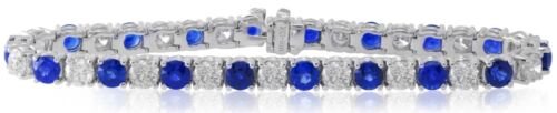 17.11CT DIAMOND & AAA SAPPHIRE 18KT WHITE GOLD ROUND 4 PRONG TENNIS BRACELET