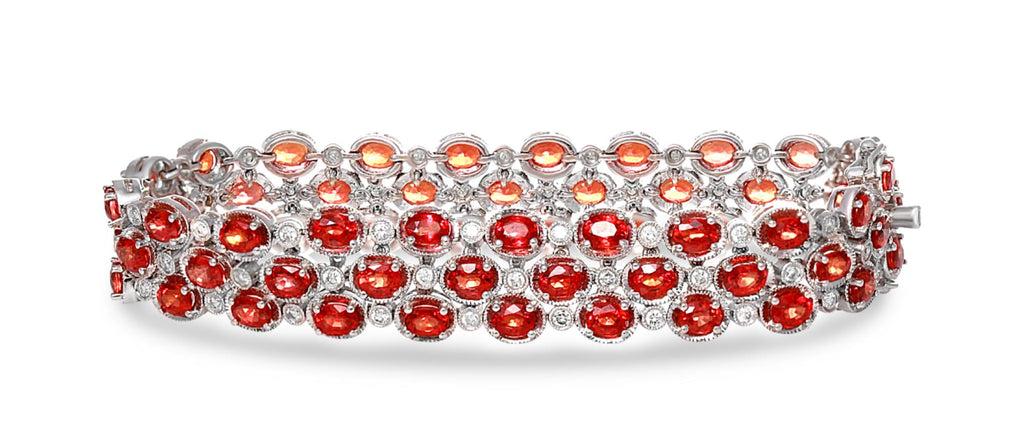 17.41CT DIAMOND & AAA ORANGE SAPPHIRE 18KT WHITE GOLD MULTI ROW TENNIS BRACELET