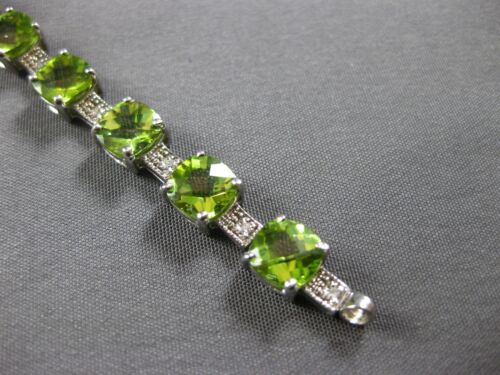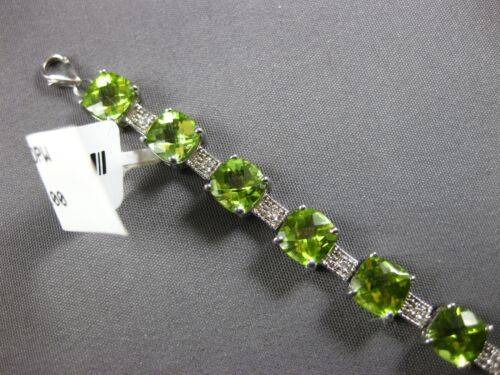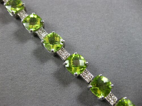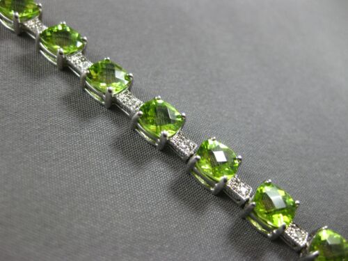 17.46CT DIAMOND & AAA PERIDOT 14KT WHITE GOLD 3D CUSHION & ROUND TENNIS BRACELET